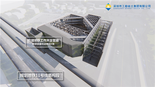 通過三維可視化BIM模型分析周邊地理環(huán)境對基坑帶來的影響,采取針對性的基坑支護方案。白鵝潭國際金融中心項目位于兩條交通主干道交界處,臨近地鐵線路,周邊環(huán)境復雜。利用BIM技術(shù)可以直觀地展示項目周邊地鐵線路、管廊以及在建工作井與項目支護構(gòu)建的關系,分析項目施工難點以及應對措施的可行性,從而為項目匹配最優(yōu)的基坑支護方案,即地下連續(xù)墻加內(nèi)支撐支護方案。